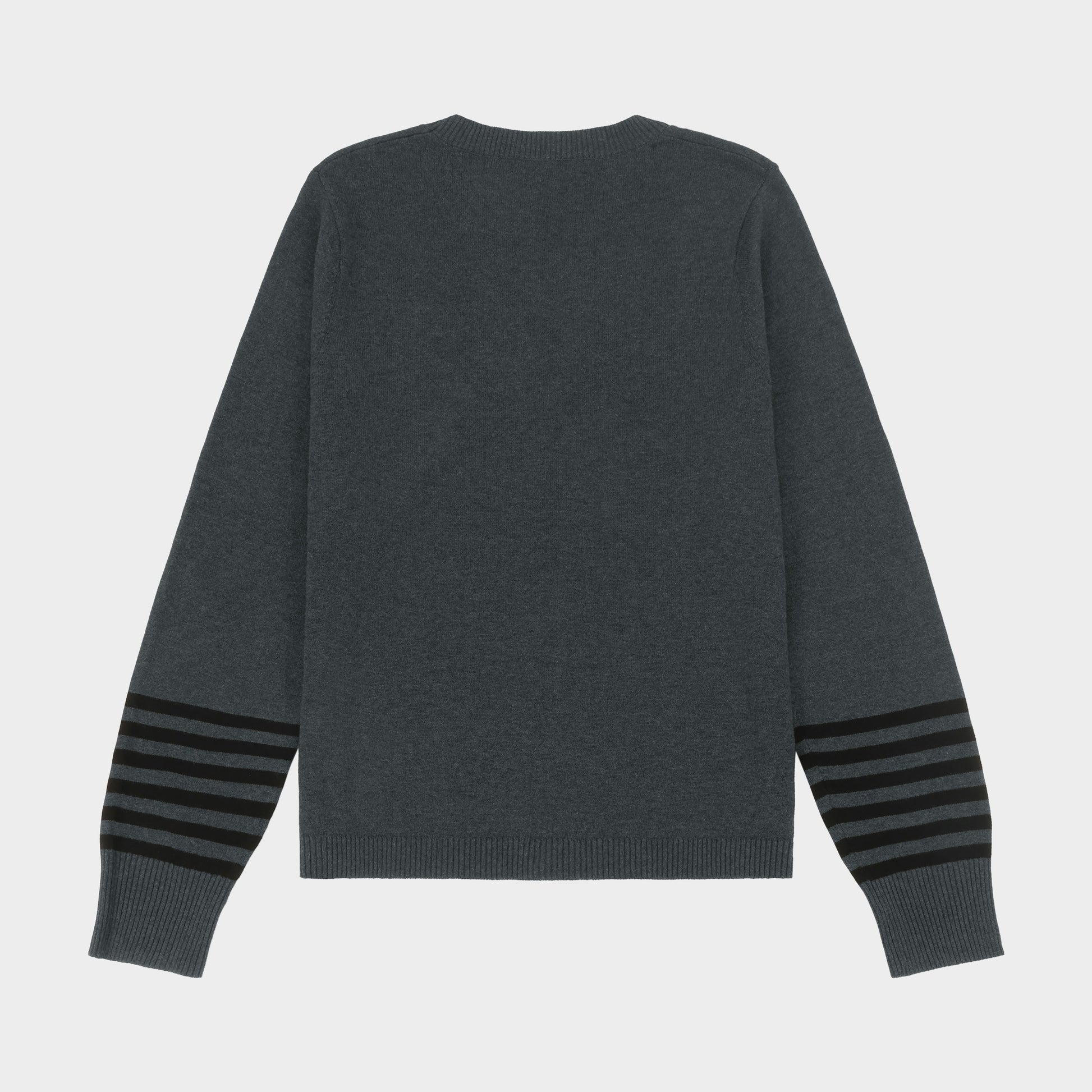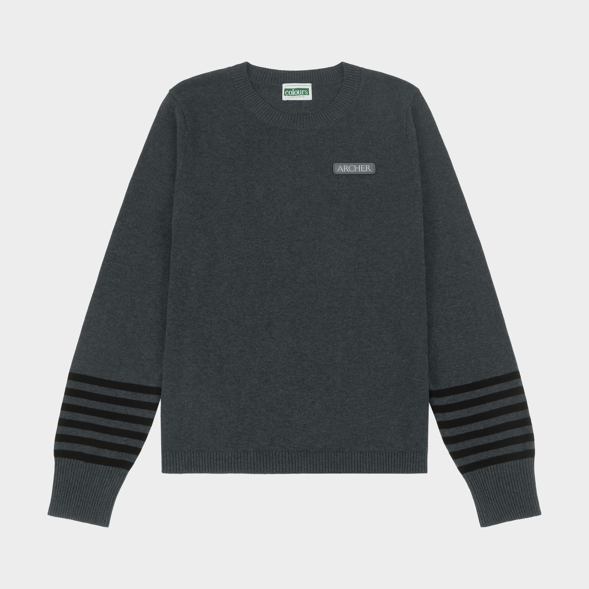Archer Crew Neck Pullover with Striped Sleeves Charcoal