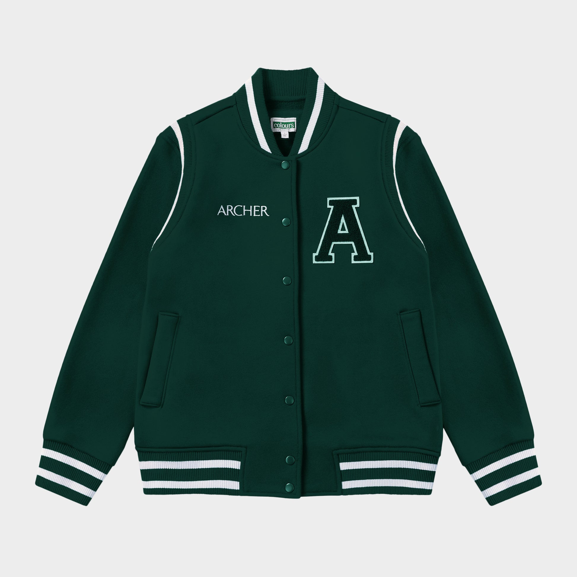 A throwback favorite with a comfort-first twist. The Fleece Varsity Jacket is made from heavyweight fleece that feels like your coziest sweatshirt but looks like a classic letterman. It features a snap-front closure, mesh-lined pockets, and contrast striped ribbing at the collar, cuffs, and hem. A bold chenille patch with your school letter and embroidered school logo gives it that timeless varsity look, designed to keep you warm, comfortable, and school-ready.