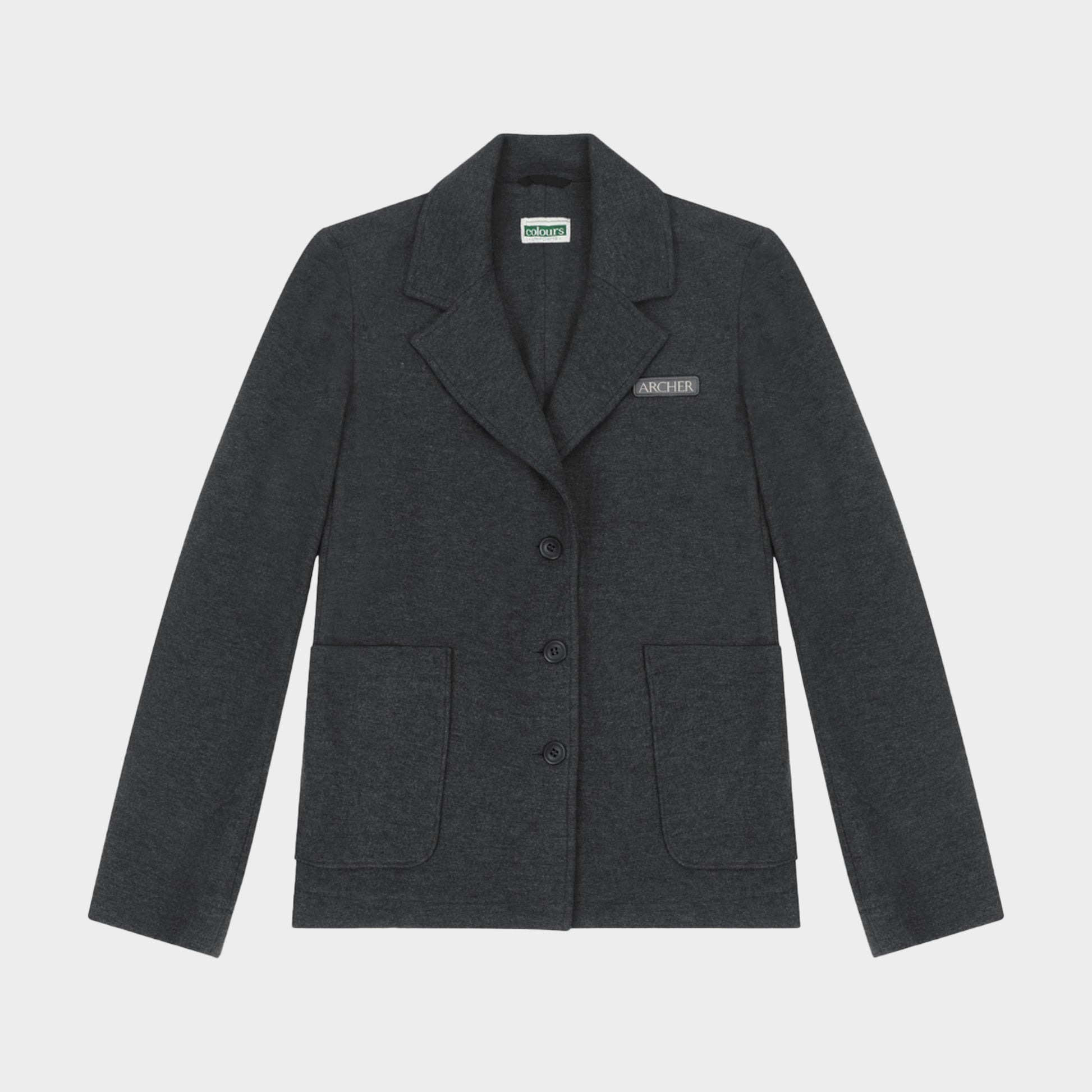 The comfort of your favorite sweatshirt—reimagined as a blazer. The Preppy Blazer is crafted from a soft yet structured knit that feels cozy while offering a clean, tailored look. Designed with a three-button front, two oversized patch pockets, and your school logo on a patch at the chest, it brings a more formal feel to any uniform without sacrificing comfort. An unexpectedly refined layer that works from classroom to assembly.