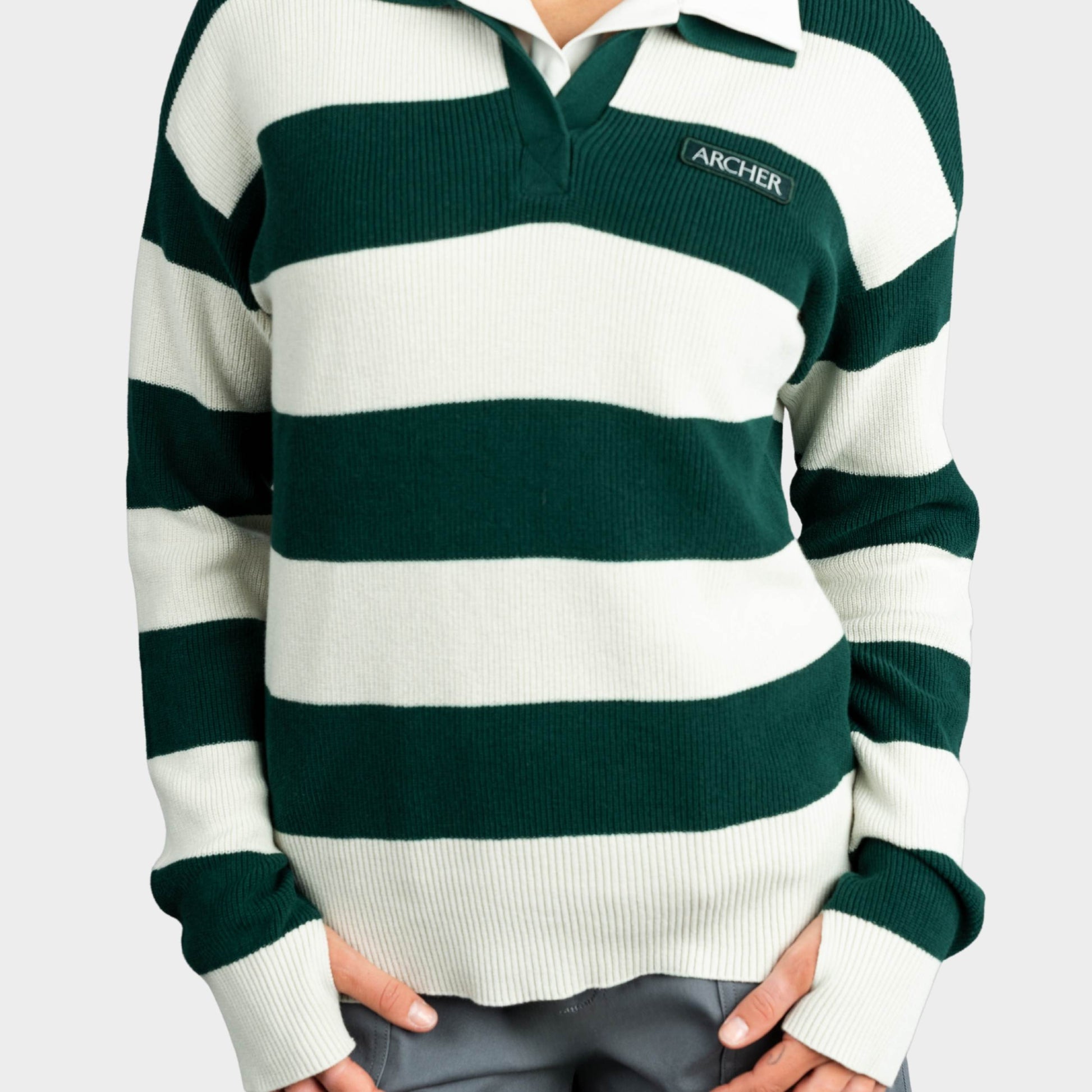 Archer Striped Rugby Polo Pullover Green