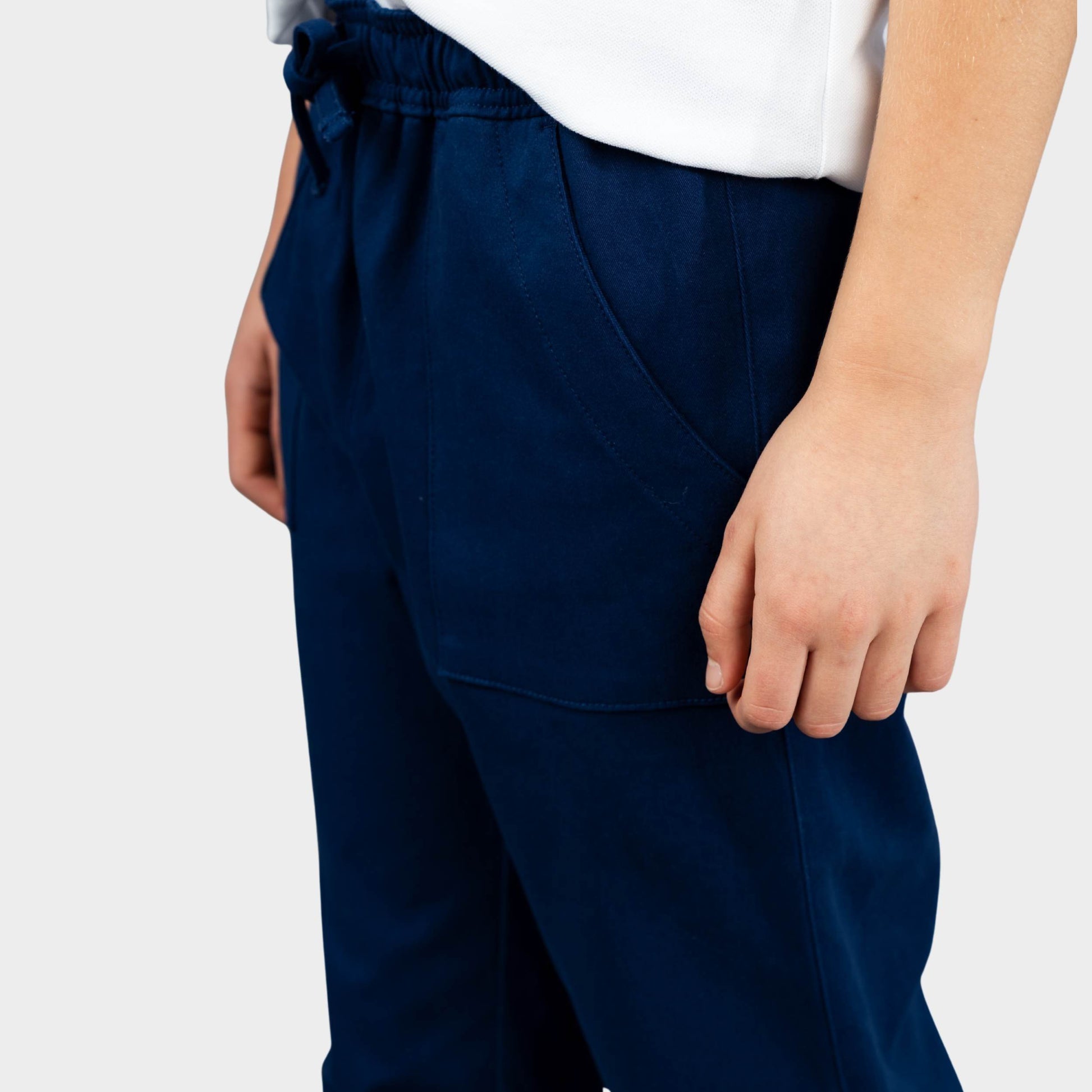 A modern take on uniform bottoms—joggers aren’t typically part of school dress codes, but we think they should be. Our Twill Joggers are made from soft, brushed cotton twill with just the right amount of stretch for all-day comfort. Featuring a fully elasticized waistband with drawstring, elasticized ankles, and a relaxed yet flattering fit. One back pocket adds a clean finishing detail to this elevated essential.