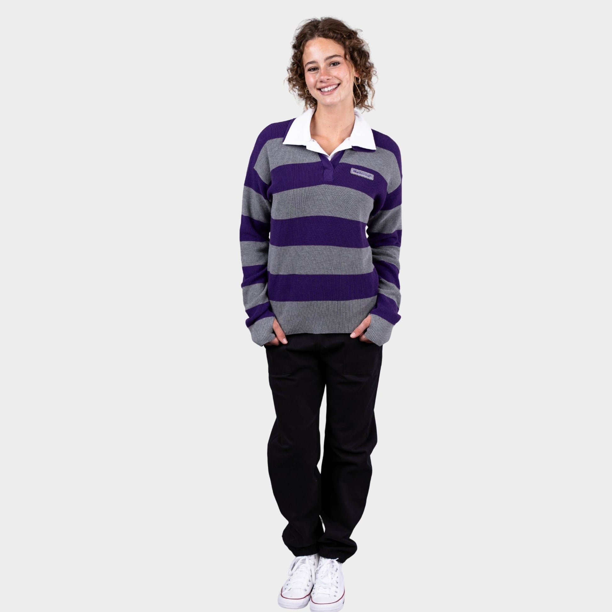 Marlborough Striped Rugby Polo Pullover Charcoal